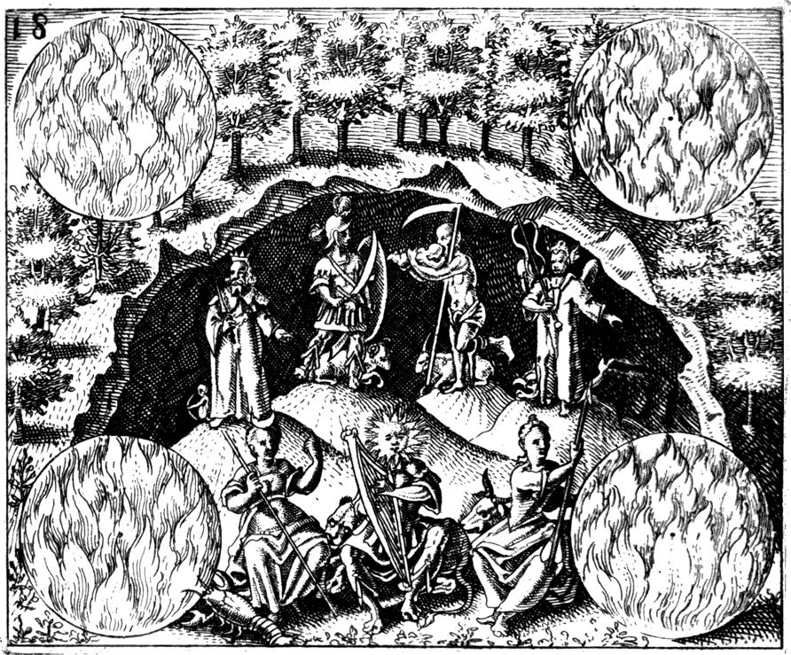 Astrologers have conceited that there was so great an affinity and correspondence between the Seven Metals before named, and the seven Planets, that nothing happened to the one, but the others shared in it; they made this correspondence to happen through an infinite number of little bodies that pass to and from each of them; and they suppose these corpuscles to be so figured that they can easily pass through the pores of the Planet and Metal they represent, but cannot enter into other bodies because their pores are not figured properly to receive them; or else if they do chance to get admittance into other bodies, they can’t fix and stay there to contribute any nourishment; for they do imagine that the Metal is nourished and perfected by the Influence that comes from its Planet, and so the Planet again the same from the Metal.