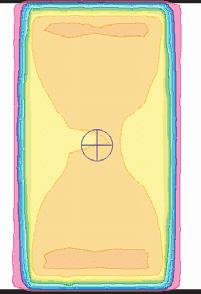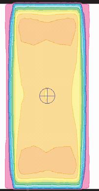 intensity will be uniform is stated and the manufacturer will make any required adjustments to the flattening filter. This depth is typically 5 or 10 cm. For large field sizes, at shallower depths, the profile will have ‘horns’ or areas of increased intensity whereas at greater depths the intensity at the edges of the beam are decreased. Two factors contribute to this: a non-equilibrium of scatter from the edge of the beam and a small change in mean energy as the distance from the centre of the field is increased. The energy change is caused by absorption of low energy photons at the flattening filter. In the centre where the filter is thickest, more low energy photons will be absorbed in comparison with the edges of the field. This absorption of low energy photons is often referred to as ‘beam hardening’. This is adequately accounted for by most planning systems and can be seen on the isodose distribution shown in Fig. 2.13.