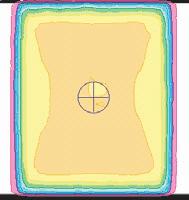 Fig. 2.7 Monte Carlo simulation of a narrow beam of a hundred 6 MV photons on a water phantom, illustrating that most of the electrons deposit their energy close to the position of the track of the incident photon beam. Generation of pencil beams for planning systems using Monte Carlo calculated pencil beams is performed in this way and the resultant dose distribution characterized. In the case of planning system pencil beams, the incident photon beam is not a single energy but a spectrum of energies to represent those found clinically in linear accelerator beams.