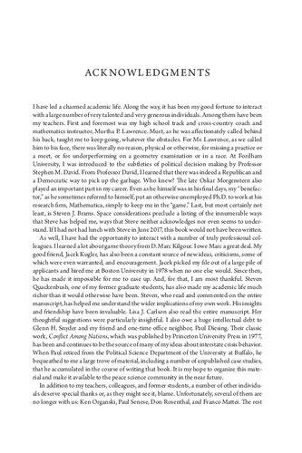 15 This listing is meant to be suggestive. It is by no means exhaustive. Useful reviews include O’Neill (1994a, b) and Snidal (2002). Zagare and Slantchev (2012) discusses the historical development of game-theoretic models in international relations and provides a more detailed overview of the current literature. See also O’Neill (2007).