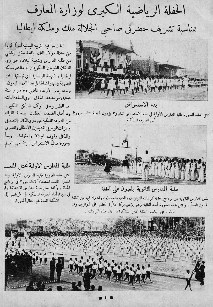 Source: ‘Al-hafla al-riyadiya al-kubra li-wizara al-ma‘arif bi munasiba tashrif hadrati sahibi al-jalala malik wa malika Italiya,’ al-Abtal, 4 March 1933, p. 4. 12