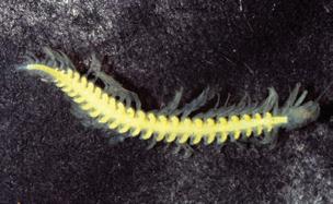 Plate 9 Photo of the remipede Lasionectes entrichoma showing male and female reproductive systems, ventral view. Photo by D. Williams and J. Yager, with permission. See page 57 in text.