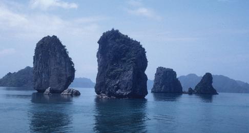 of the karst landscape of Halong Bay, Vietnam. Karst landscapes take many different shapes and forms in different regions. Among the most spectacular are the towers and pinnacles of Halong Bay, a UNESCO World Heritage site. The remaining limestone is slowly being dissolved away. See page 5 in text.