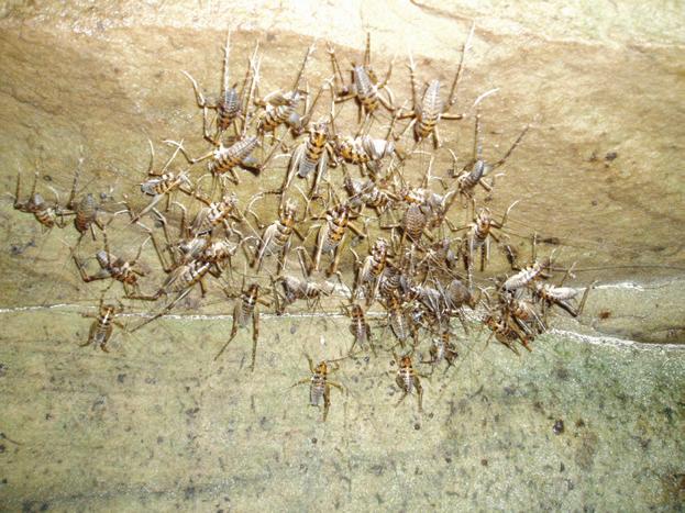Plate 12 Concentration of cave-crickets, Ceuthophilus stygius, on the ceiling of Dogwood Cave, Hart Co., Kentucky, USA. Photo by H. H. Hobbs, with permission. See page 101 in text.