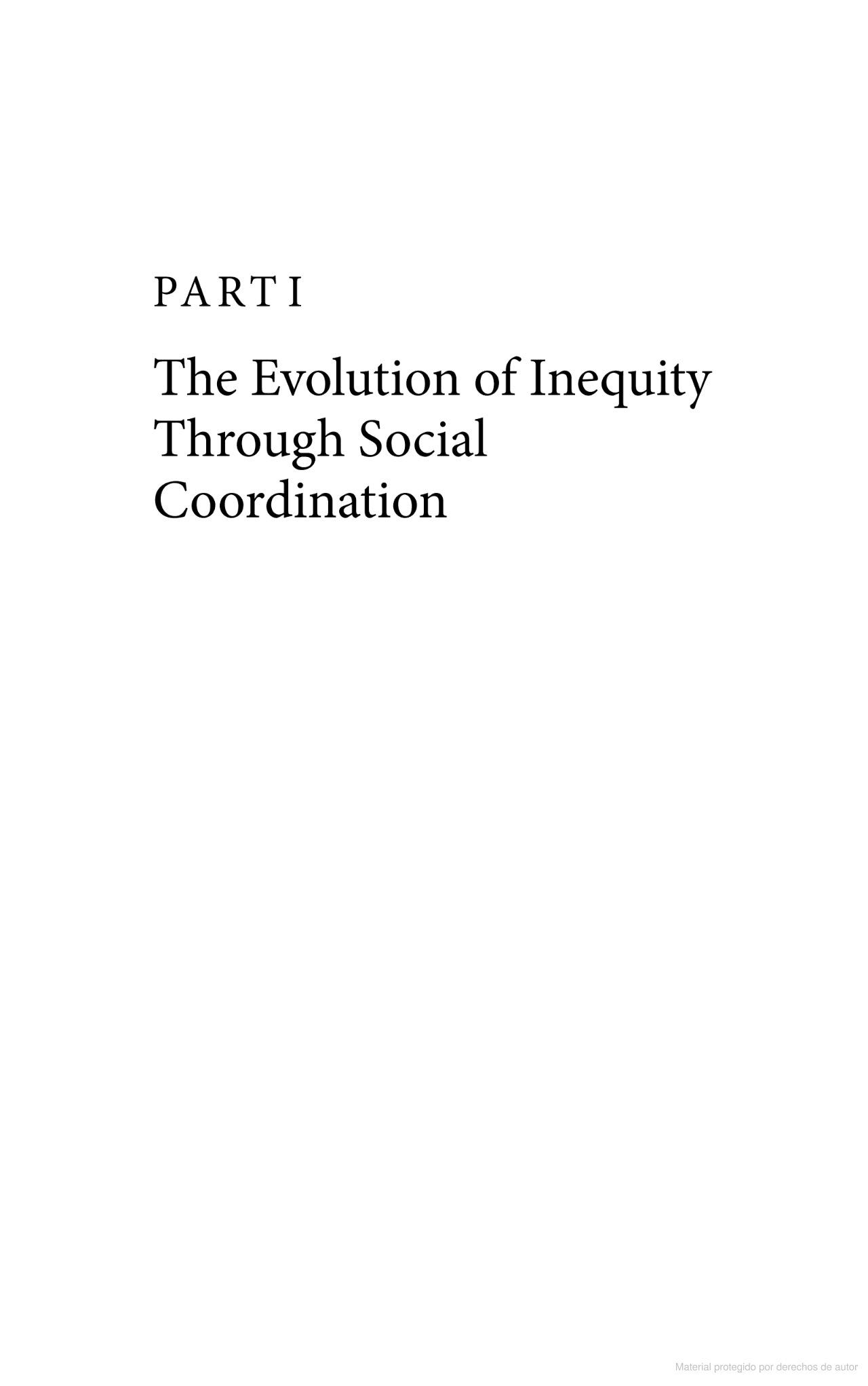 0.1 Overview Thebodyofthebook,asmentioned,isdividedintotwoparts. PartI,whichincludesChapters 1 through 4,focusesoncoordination, and,inparticular,thecaseofgendereddivisionoflabor.PartII,including Chapters 5 through 7,shifsgearstofocusoninequitabledivisionsof