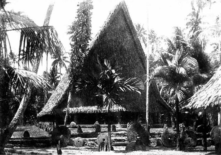 In front of a failu there are always many fei, which are thus displayed as evidence of the industry and wealth of the inmates; they are acquired by the hard work of members either on fishing expeditions or by their labour in building houses for the villagers.