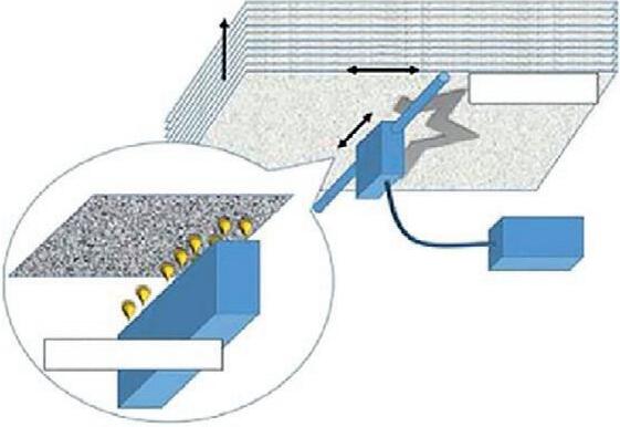 Powderparticlesaredistributedevenlyon theprintbed,andaliquidbinderis depositedontothetargetareatobindthe powders.Anewlayerofpowderisthen addedtotheprintbedandthesame depositionprocessisrepeatedaccordingto thedigitaldesign.