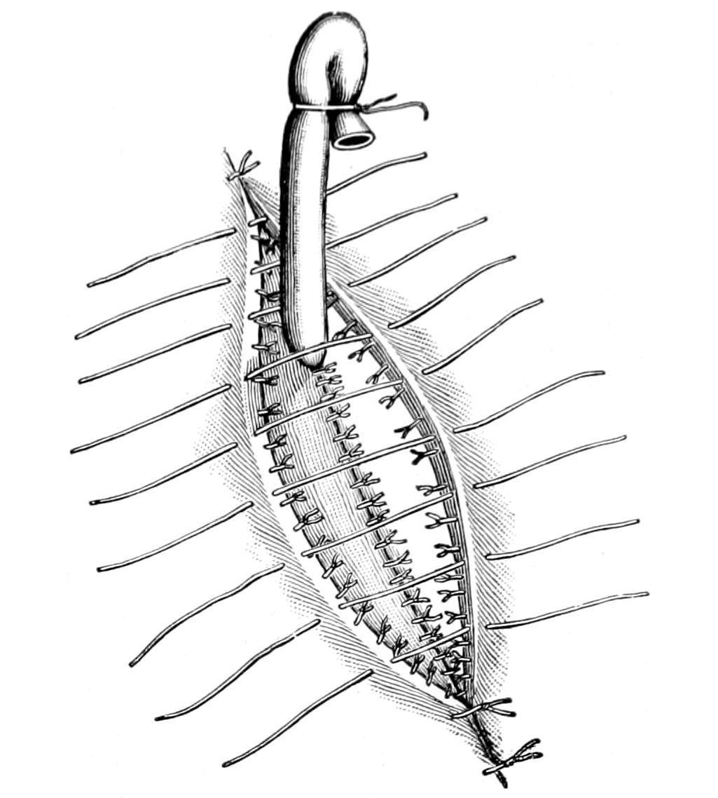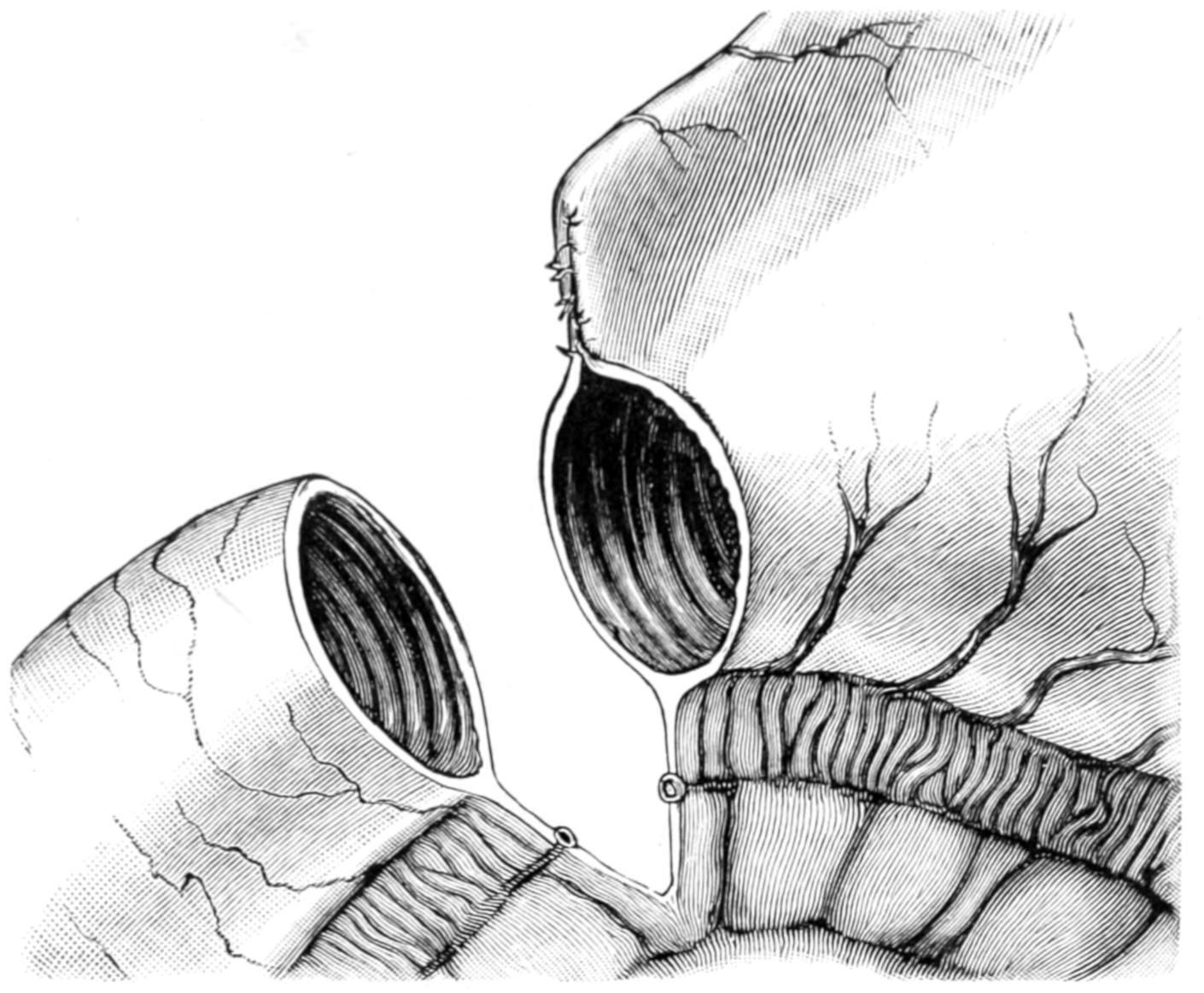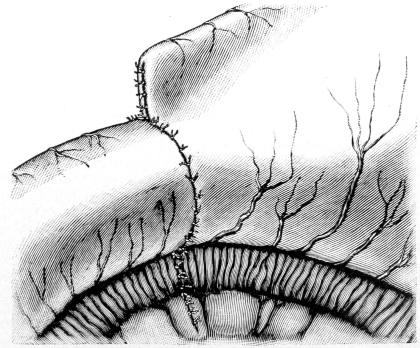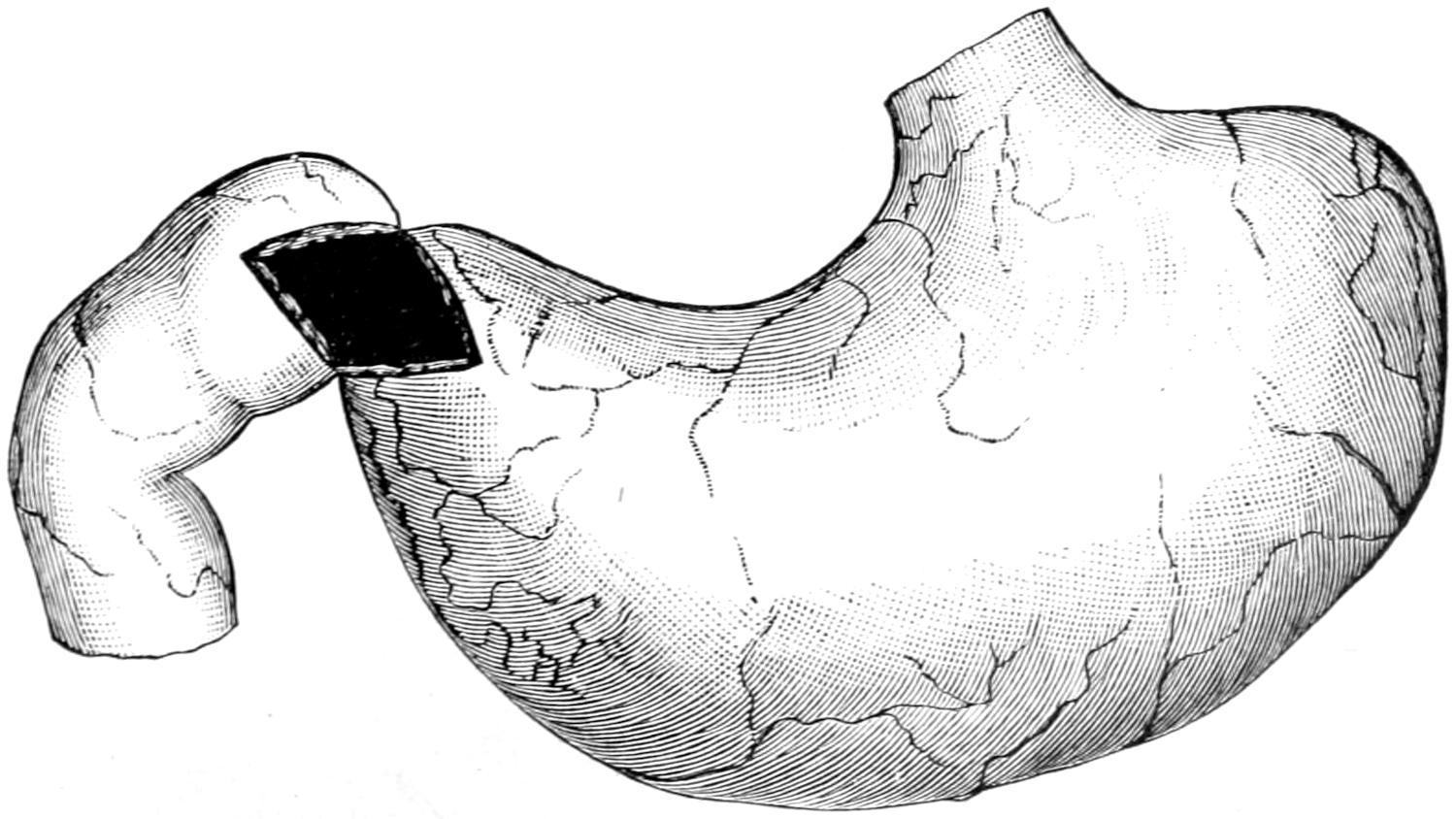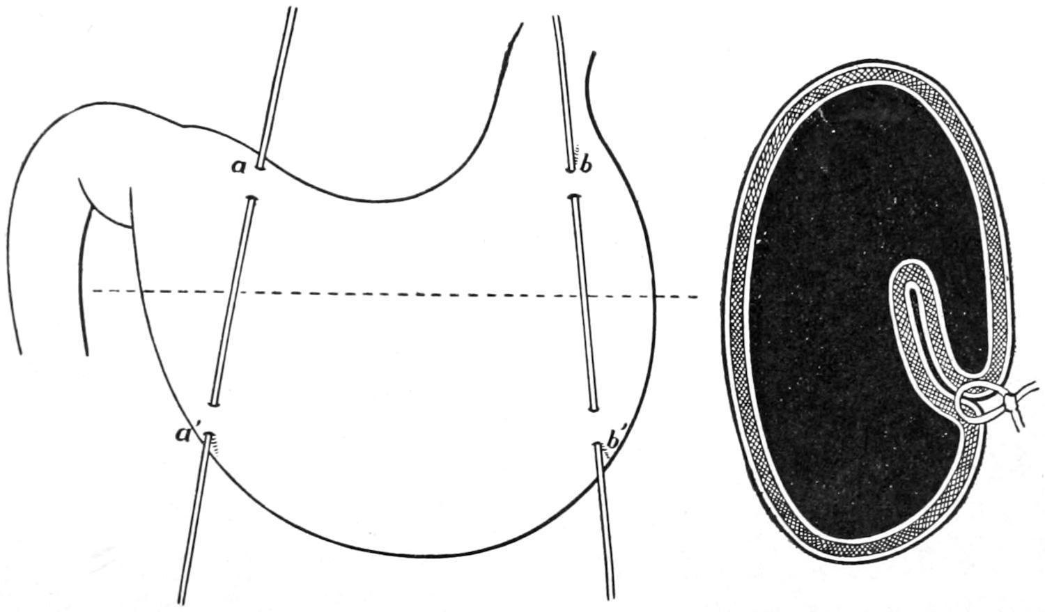 The rationale of making an anastomotic opening between the stomach and the upper end of the bowel is simply this: that thereby the stomach is given a degree of physiological rest to which it has long been a stranger, and that food may pass easily from the stomach into the upper bowel without irritating or aggravating the ulcerated portion, which is usually at the pyloric end. It should be understood, then, that gastro-enterostomy, done for this purpose, is simply a means of carrying out the universally applicable canon of physiological rest for diseased organs or surfaces. The operation of making this anastomosis will be described below.