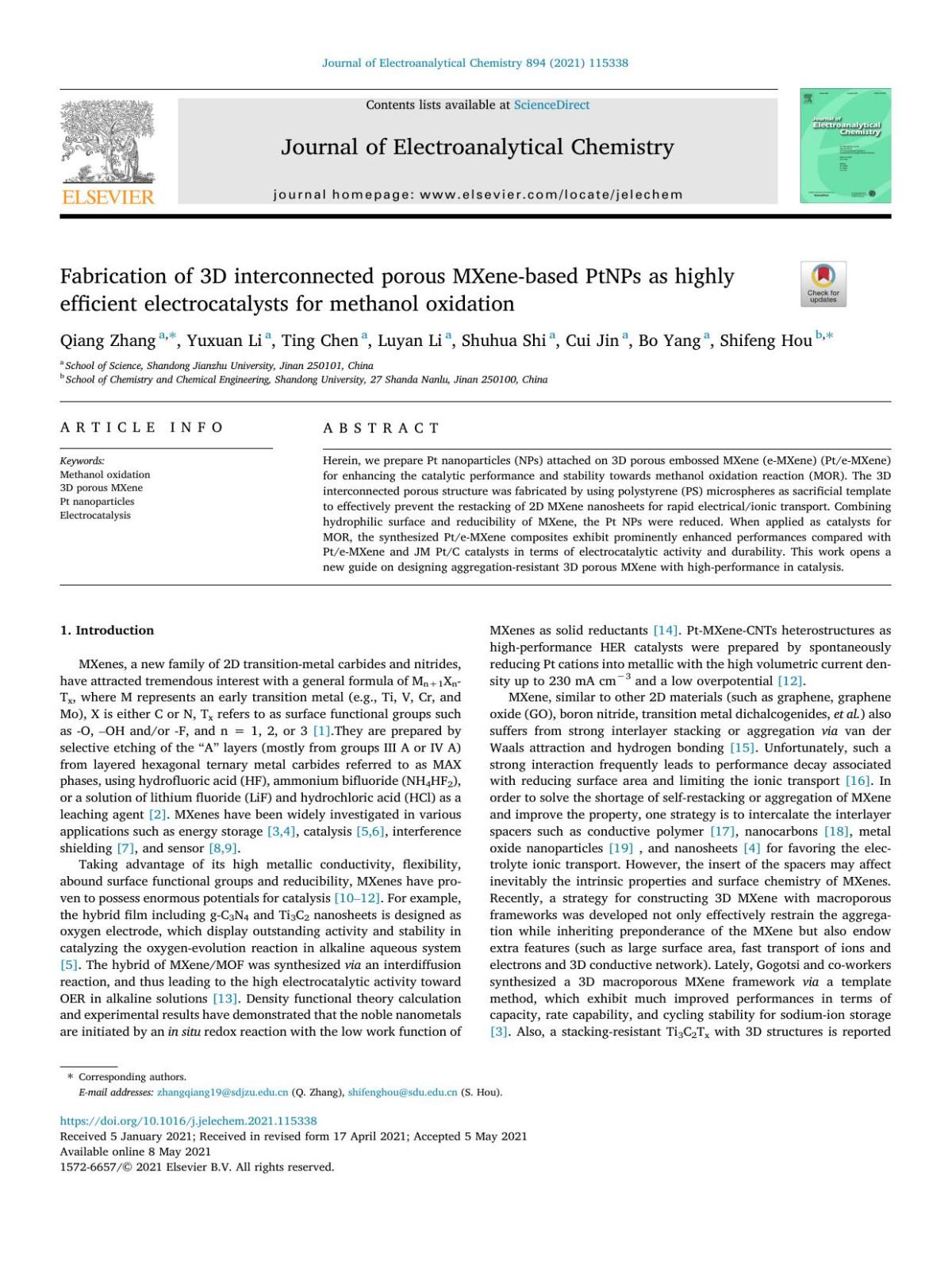 [2] K. Li, T. Jiao, R. Xing, G. Zou, J. Zhou, L. Zhang, Q. Peng, Q, Peng, Fabrication of tunable hierarchical MXene@AuNPs nanocomposites constructed by self-reduction reactions with enhanced catalytic performances, Sci. China Mater. 61 (5) (2018) 728–736.