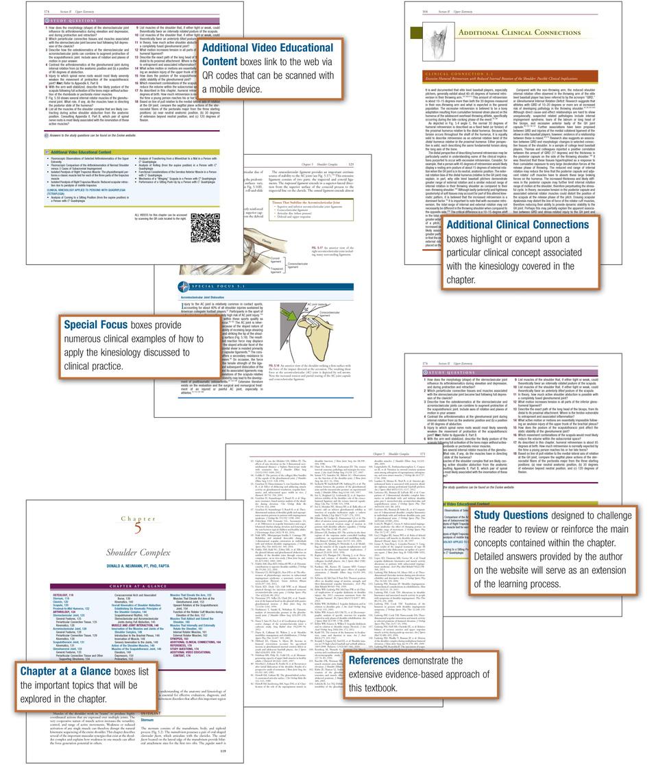 The collection of art in this edition has continued to evolve since the first edition published in 2002. The overwhelming majority of the approximately 700 illustrations are original, produced over the course of compiling the three editions of this text The illustrations were first conceptualized by Dr Neumann and then meticulously rendered primarily through the unique talents of Elisabeth Roen Kelly Dr Neumann states, “The artwork really drove the direction of much of my writing. I needed to thoroughly understand a particular kinesiologic concept at its most essential level in order to effectively explain to Elisabeth what needed to be illustrated. In this way, the artwork kept me honest; I wrote only what I truly understood.”