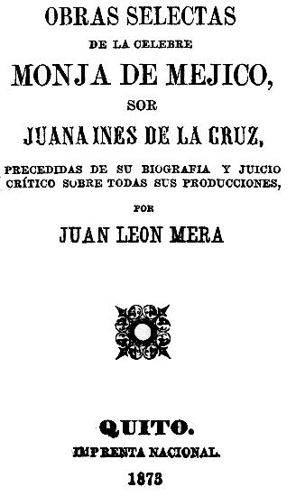 ¡Las obras! las obras de la Décima Musa! ¿Dónde dar con ellas en nuestra tierra en que es tan difícil hallar libros antiguos y en que casi no existen bibliotecas públicas? Sin embargo, las buscaremos; nuestras diligencias no serán infructuosas; leeremos esas obras con el interes que cumple à un americano, y sin duda hallaremos en ellas mucho bueno. Sí, es imposible que Sor Juana Ines no haya producido mucho bueno. El gran ingenio que se estraviò imitando á Góngora en lo malo, ha debido imitarle tambien en lo excelente, ó no es un gran ingenio, y no es la poetisa celebrada por Ticknor y Cantú.