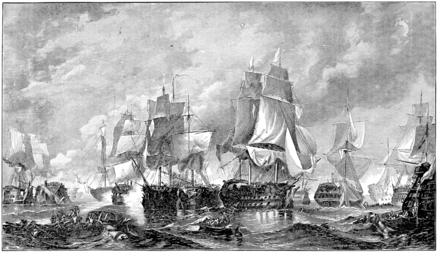 Of these, six 74s, three 64s, and all the smaller vessels were afterwards placed under Nelson’s orders, and bore the brunt of the battle.