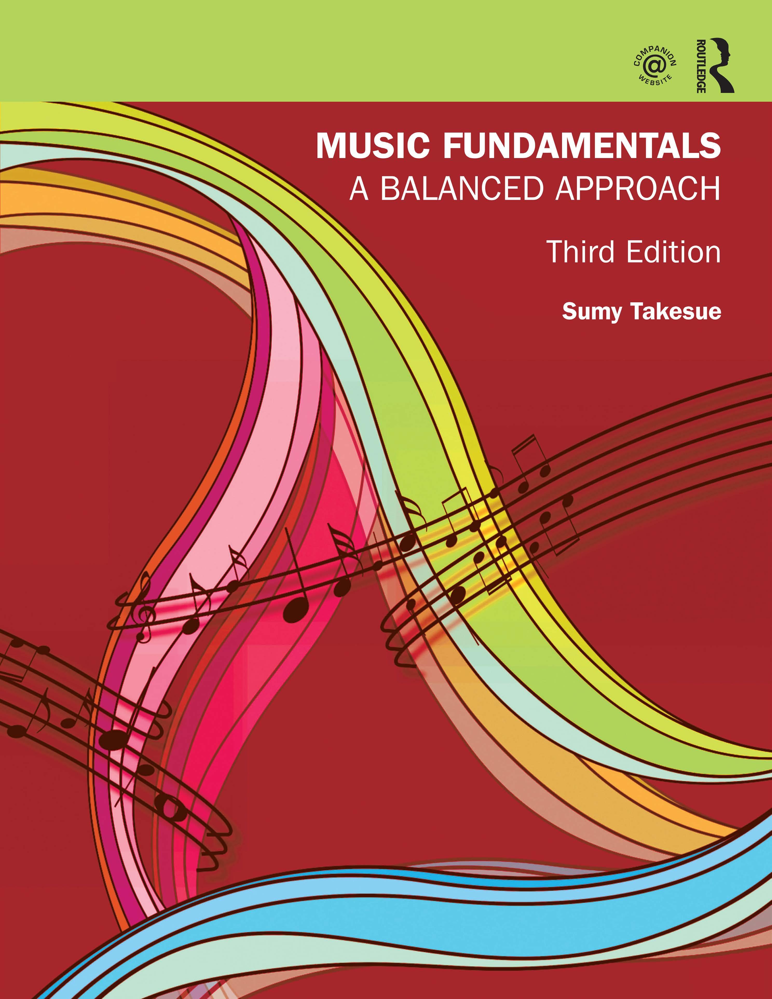 Music Fundamentals: A Balanced Approach, Third Edition is written for you. It is a “hands on” book that includes music examples from all genres: pop, spirituals, classical, songs from around the world, many of which may be familiar to you. You will learn to read and perform music and begin to compose your own music. Every musical concept, whether it’s reading, writing, counting or singing, is followed by exercises that begin with easy drills and progress to more challenging ones. Additionally, you can go online to the website at www.routledge.com/cw/takesue and listen to or sing with the tracks that are provided, or complete the interactive exercises.The book is designed for you to play exercises such as scales or triads on your own keyboard or on the 50-key pullout paper keyboard. As in learning any new language, the more you involve yourself in these activities, the better you will master the language of music.