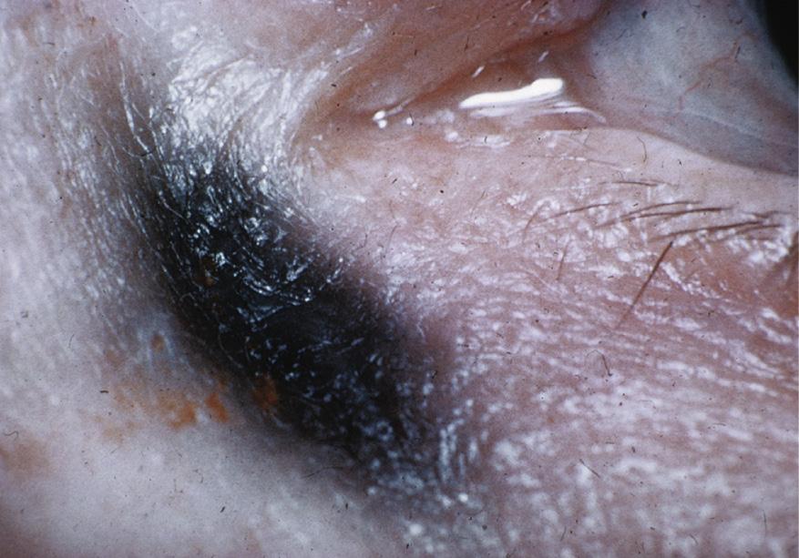 FIG. 2.1 Chronic use of silver nitrate solutions causes staining of the lacrimal sac and surrounding tissue18.