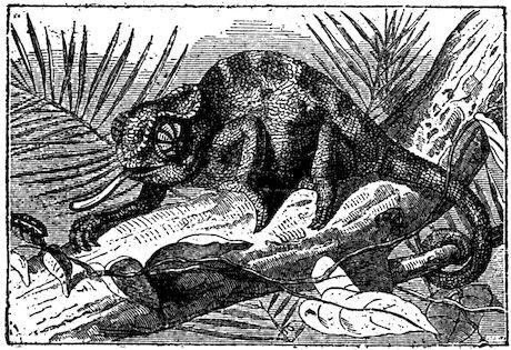 F . 280. C (Anolis), or green lizard of southern U.S. Far excels European chameleon (Fig. 281) and all known animals in power of changing colour (green, gray, yellow, bronze, and black).