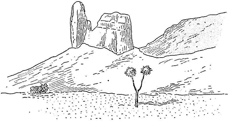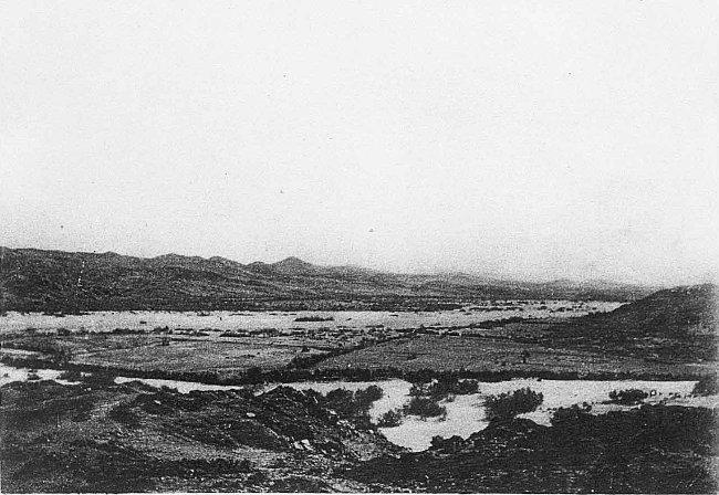 où il y a une douzaine de talah (Acacia), jusqu’à In Azaoua, pendant au moins une centaine de kilomètres, il n’y a absolument aucune végétation : le sol est partout rigoureusement dénudé ; on ne voit que du sable et des grès.