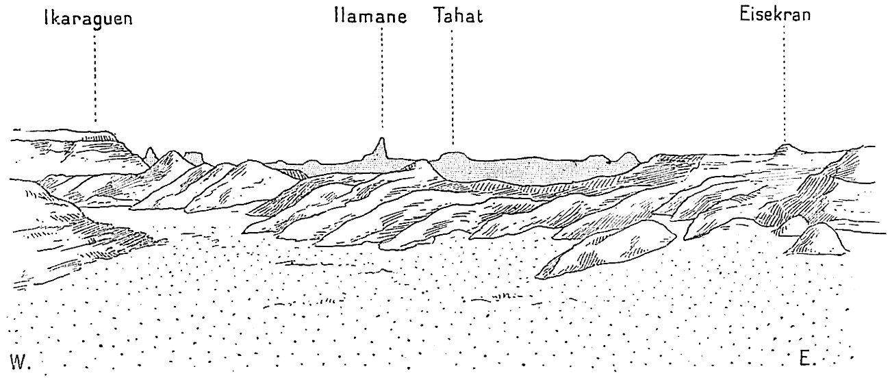 Le tassili du sud ou des Ahaggar « est un plateau rocheux, sans eau, sans végétation, presque inconnu des indigènes eux-mêmes tant il est inhospitalier ». Cette indication de Duveyrier [LesTouaregs duNord, p. 17] a besoin d’être réformée.
