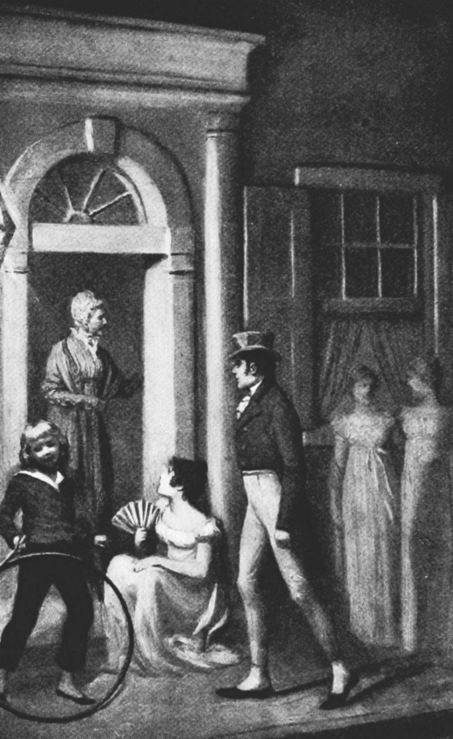 Lettice gave him a soft little dab with her white fingers, and another moment brought them to a standstill before one of the comfortable houses fronting the square below their own home. They found Miss Julia surrounded by a bevy of young gentlemen in short-waisted coats, and by as many young ladies in as short-waisted gowns.