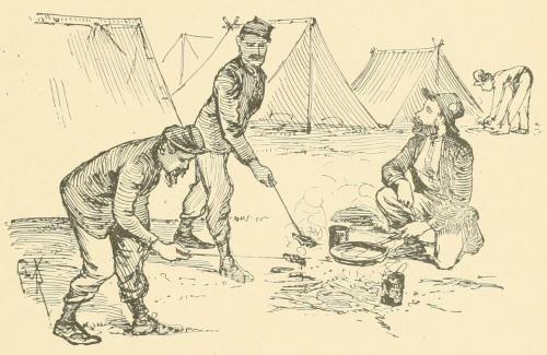 When the meat ration was served out raw to the men, to prepare after their own taste, although the variety of its cooking may not perhaps have been much greater, yet it gave more general satisfaction. The growls most commonly heard were that the cooks kept the largest or choicest portions for themselves, or else that they sent them to the company officers, who were not entitled to them. Sometimes there was foundation for these complaints.