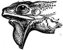 How many nostrils? (Fig. 251.) Are they near together or separated? Large or small? A bristle passed into the nostril comes into the mouth not far back in the roof. Why must it differ from a fish in this?