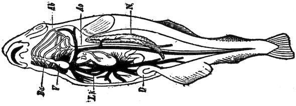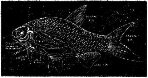 Questions.—Which of the fins of the fish have a use which corresponds to the keel of a boat? The rudder? A paddle for sculling? An oar? State several reasons why the head of the fish must be very large, although the brain is very small. Does all the blood go to the gills just after leaving the heart?