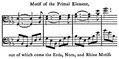 One of the simplest motifs in the book is one of the most important: the Rhinegold motif. It is like the blowing of a fairy horn heralding to the world of sprites and elves the magic wonder in the river.
