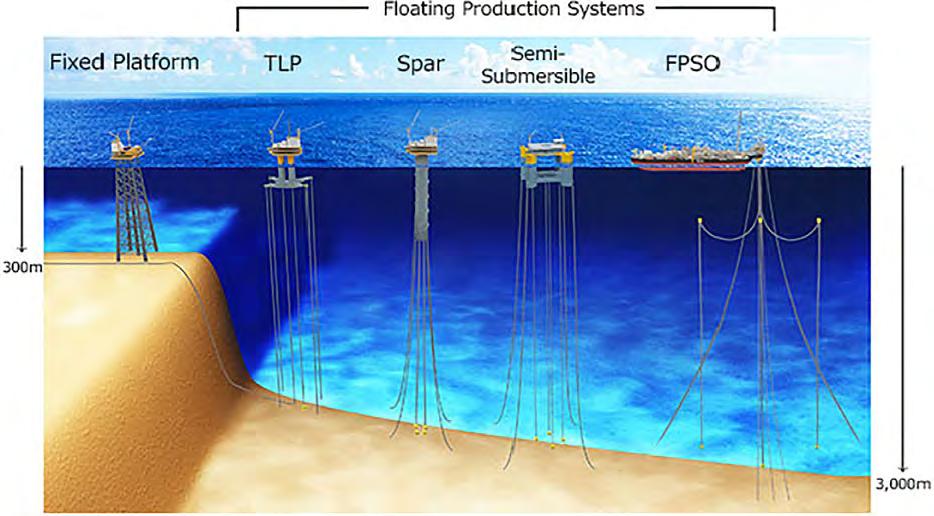 Fig.1.1 Offshorefielddevelopment/productionsolutions. (Courtesy:MODEC/Springer.)