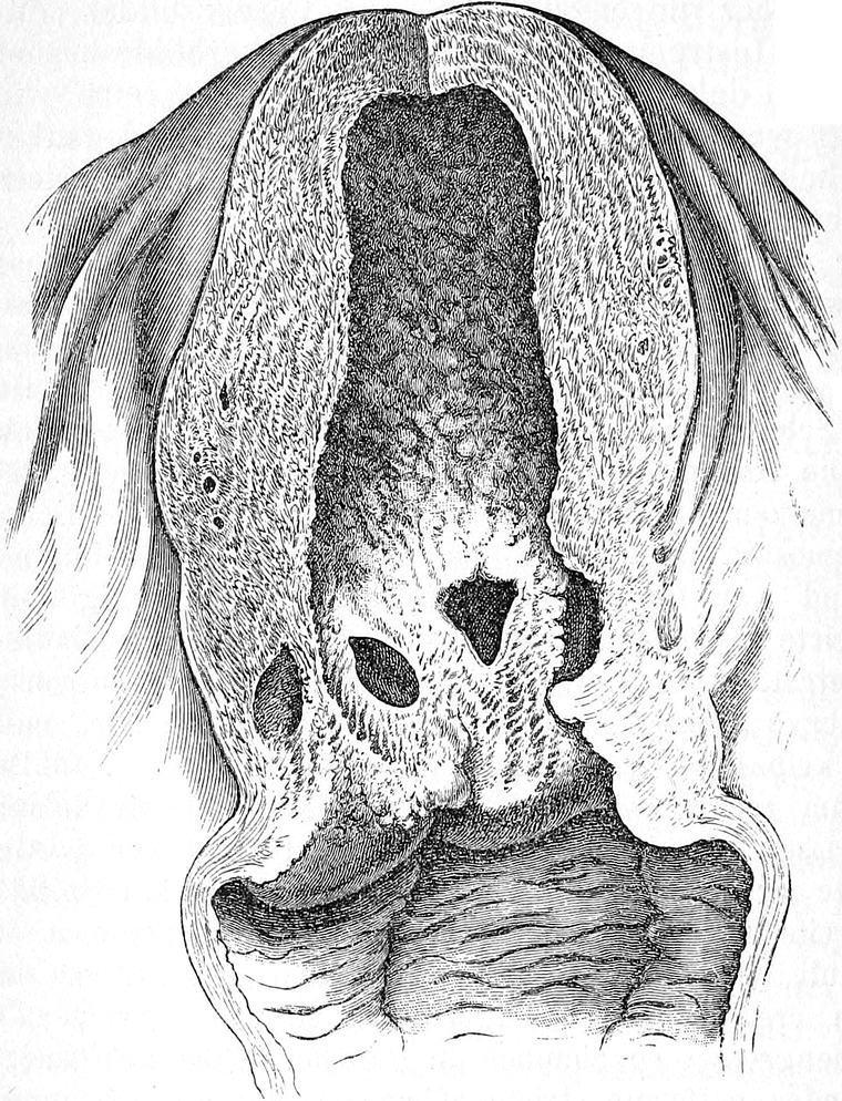 Abgesehen von dieser eventuellen Bedeutung sind solche Folgen auch insoferne von grosser gerichtsärztlicher Wichtigkeit, weil durch ihren Bestand nicht blos die Diagnose des stattgefundenen Abortus, sondern auch die Erkennung der Art und Weise, in welcher derselbe eingeleitet wurde, wesentlich erleichtert wird.