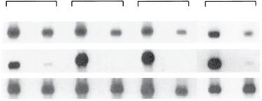 The expression of ocular self-antigens in the thymus was investigated in both mice and humans. Egwuagu et al.3 have shown in different mouse strains an inverted relationship between thymic expression of ocular-specific retinal antigens and the susceptibility to induction of experimental autoimmune uveitis (EAU): Thymic expression of retinal antigens causes lack of responsiveness to these antigens. An example of this phenomenon is shown in Fig. 1.2. Four inbred strains of mice were evaluated for the expression in their thymus of two uveitogenic antigens, interphotoreceptor retinoid-binding protein (IRBP) and S-antigen (S-Ag). All four strains were resistant to the induction of uveitis when S-Ag was used as the immunizing antigen, and all four expressed S-Ag in their thymus. However, two of the four strains, B10.A and B10.RIII, did not express IRBP in their thymuses and were susceptible to uveitis induction when IRBP was used as the immunizing antigen. These observations were extended to include other rodents and primates.4 In the Lewis rat, which is susceptible to both antigens, neither message was found in the thymus. These observations may provide an insight into the propensity for the disease in humans. Takase et al.5 evaluated 18 human thymus samples taken from patients undergoing surgery for congenital heart disease. They found that there was expression of the four antigens that can induce experimental uveitis (S-Ag, recoverin, RPE65, and IRBP) in the thymuses of the tested patients. However, the expression of the various antigens was very variable, with some thymus samples showing strong expression and others not. The implication of the findings from these studies is that expression of these antigens in the thymus is very variable in humans, similar to what is seen in the differences among various rodent strains. T cells with specificity to ocular self-antigens that escape the negative selection are found in the circulation, but do not induce uveitis. This observation is explained by two mechanisms: (1) the inhibitory effect of T-regulatory (Treg) cells, which are normally present in the body; and