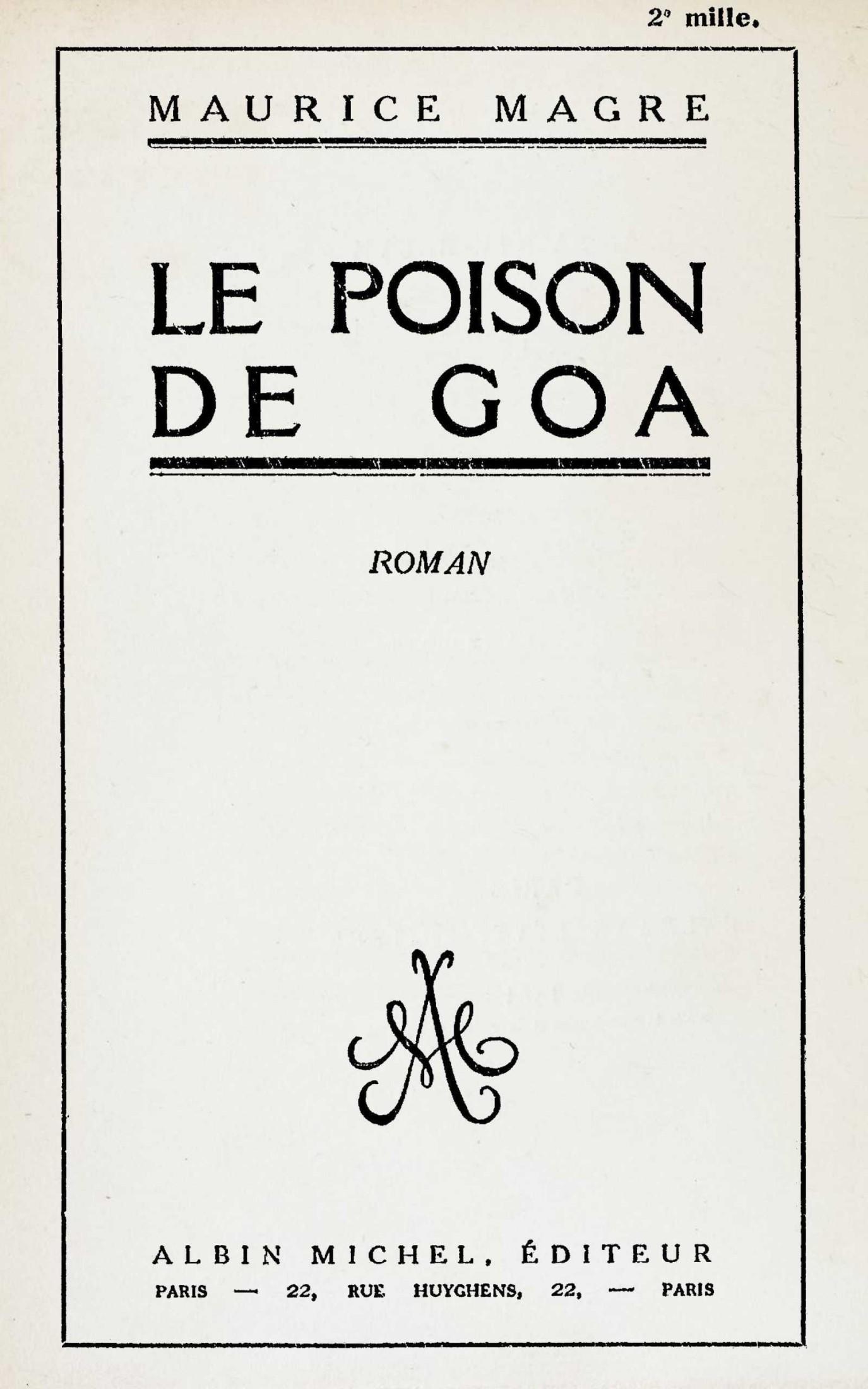 *** START OF THE PROJECT GUTENBERG EBOOK LE POISON DE GOA : ROMAN ***