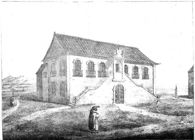 The population of Pernambuco is estimated at about sixty-five thousand persons, St. Antonio containing much the greatest proportion. I endeavoured to discover the site and remains of Fribourg House, the first edifice built upon it by Prince Maurice of Nassau; and was finally assured that its remains constitute the present Casa de Fazenda Real, which, though exhibiting some antiquity in its aspect, in consequence of being white-washed, could not be identified with positive certainty. But its appearance, (pretty correctly represented in the plate,) combined with the tradition that it is actually the remains of Fribourg House, does not leave much room to doubt the fact. The convent fronting it has a great many cocoa-nut trees, which no doubt are the fruits of those he so copiously planted upon the island. A Prince who did so much for Pernambuco, in so short a time, and who here built the first two
