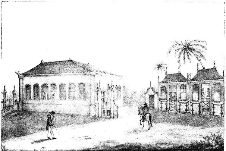 The roads branching from Boavista, and meeting in one, about half-way to Ponta de Cho, are adorned with some elegant white houses, in a very excellent state of exterior repair, the grounds being enclosed by lofty walls, and many of the front entrances, consisting of a handsome portico, excelling any thing in this style near Rio de Janeiro. Every hundred yards, places of this character are met with to Ponta de Cho, where the river opens out and presents a very pleasing scene, the road running for a short distance along its margin, fronted by the residence of the governor, not very gracefully ornamented with a chapel in the middle of the entrance court. From hence the main road leaves the river, and for about two miles presents many neat houses to the Poco de Panela, some of them being the residences of English merchants.