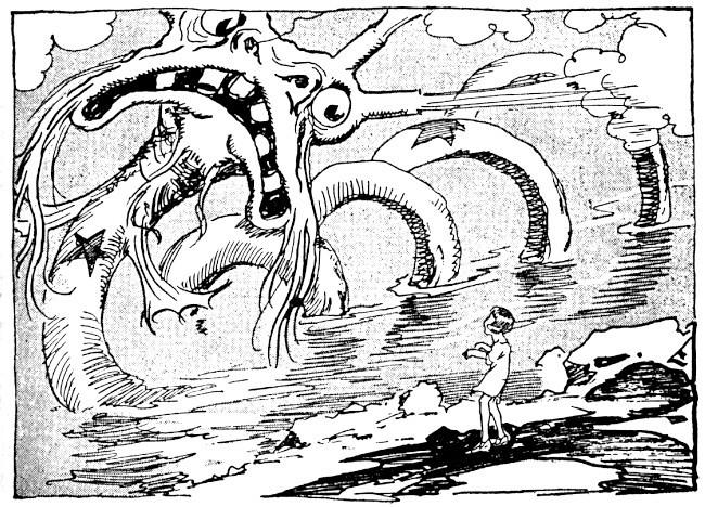 "But the mortal maiden, we must save the mortal maiden!" exclaimed Cheeriobed anxiously. "You should never have carried her to that monster's cave. Who will go with me to rescue this poor child?" The Islanders looked uncomfortably at one another, then as the King