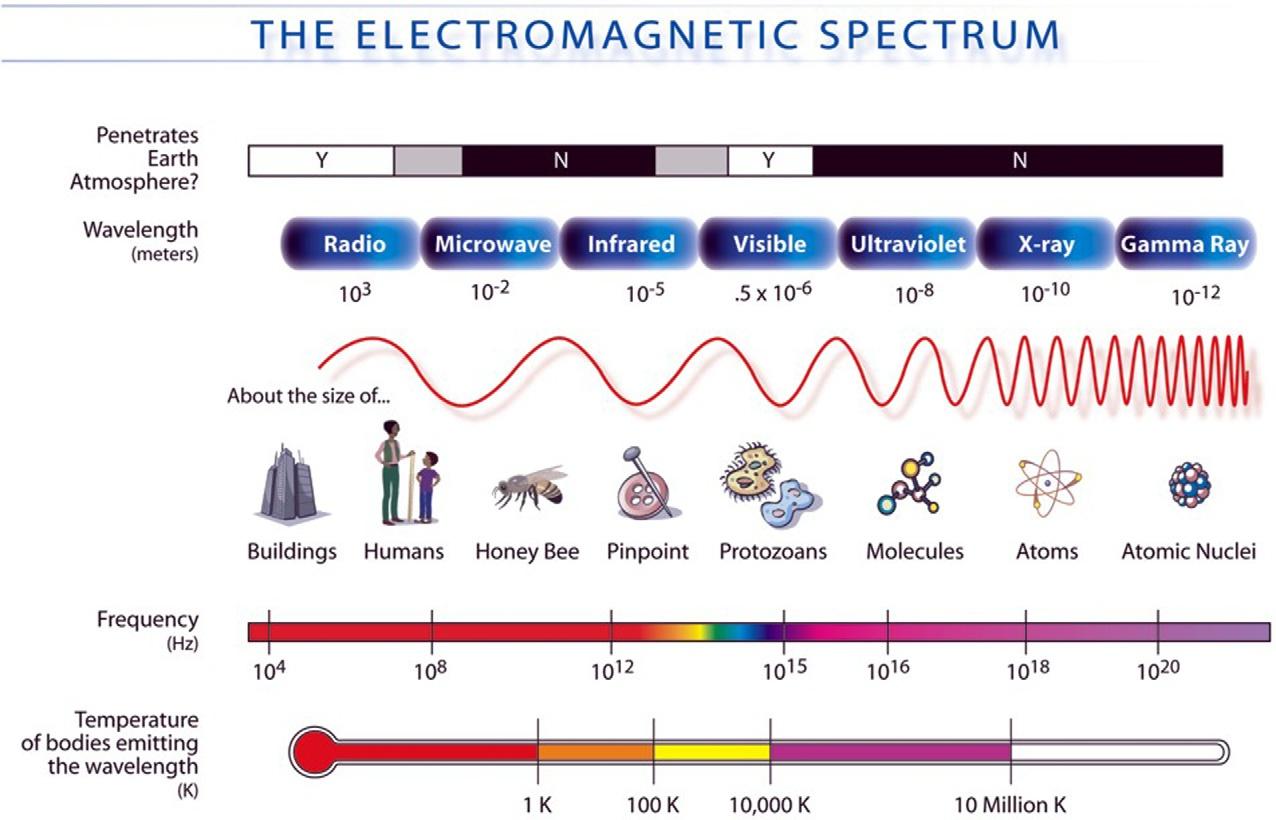 FIG.1 Schematicoftheelectromagneticspectrumthatdepictingvariousproperties. (Reproduced fromNasa(publicdomain).)