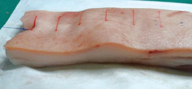 The photograph shows the lifting effects created by bidirectional cog threads in porcine tissue. As seen in the experimental porcine tissue, I tried to prove what only existed in my mind through actual experimentation. I still remember the joy of being able to physically prove the hypothetical reality and theory which existed in my mind.