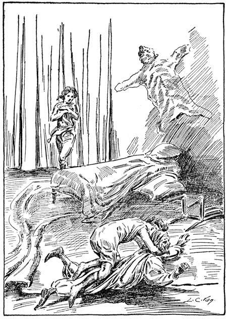 Although taken by surprise as he was, Amshied was no weakling. Carl soon found this out when with a violent twist of his body Amshied rolled over and clutched at Carl’s throat. With a trick learned at school Carl broke the hold, but Amshied was endowed with brute strength and he seized Carl around the body with both arms. Together they rolled across the floor, bringing up with a thud against the door.