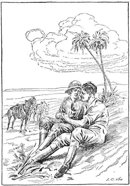 Proceeding again, they moved swiftly northward over the level plain. Here and there they came upon an isolated group of palm trees and small bushes, partly burned up by the hot rays of the desert sun. Otherwise, there was nothing but sand before them and a clear cloudless sky overhead. But the sand and the heat mattered not to the lovers, as riding side by side, they paved the road of their future with bricks of shining gold!