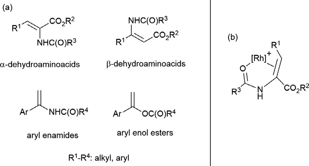 Despitetheevidentinterestoftheenantioselectivehydrogenationof α-cyanoenamides 7 duetothesyntheticvalueofcorrespondingproducts (Scheme4),theonlyexampleofthisreactionforalongtimehasbeen thehydrogenationof Z isomerofphenylderivative(R ¼ Ph)with Rh/DiPampcatalystdescribedbyKnowlesandcoworkers (15),which requiredoneequivalentofaceticacidtoachievegoodreactionrates (S/C ¼ 700,50 °C,22h;86%ee).Moreover,thehydrogenationof 7 isa ratherchallengingreactionduetothecoordinatingpropertiesofthecyano group.Arelevantcontributioninthisreactioncorrespondstothegroup ofX.Zhang (16).Startingwiththeanalysisofthehydrogenationof E and Z isomersofarepresentativesubstrate(R ¼ Ph),ascreeningofseveralRh diphosphinecatalystsinMeOHshowedsuperiorresultsofthatbasedon Me-DuPhosligand(L5a).Thiscatalystiscapabletohydrogenateboth E and Z isomerswithgoodcatalystactivityandenantioselectivities higherthan99%ee.Worthtonotethesameproductenantiomerwas obtainedirrespectiveoftheolefinconfigurationofthesubstrate.Thisphenomenonisalsoobservedwithcatalystsbasedonotherdiphosphines (e.g.DuanPhos),althoughtheactivityshownislowerthanthatachieved bytheMeDuPhoscatalyst.Moreover, E isomerismorereactivethanthe