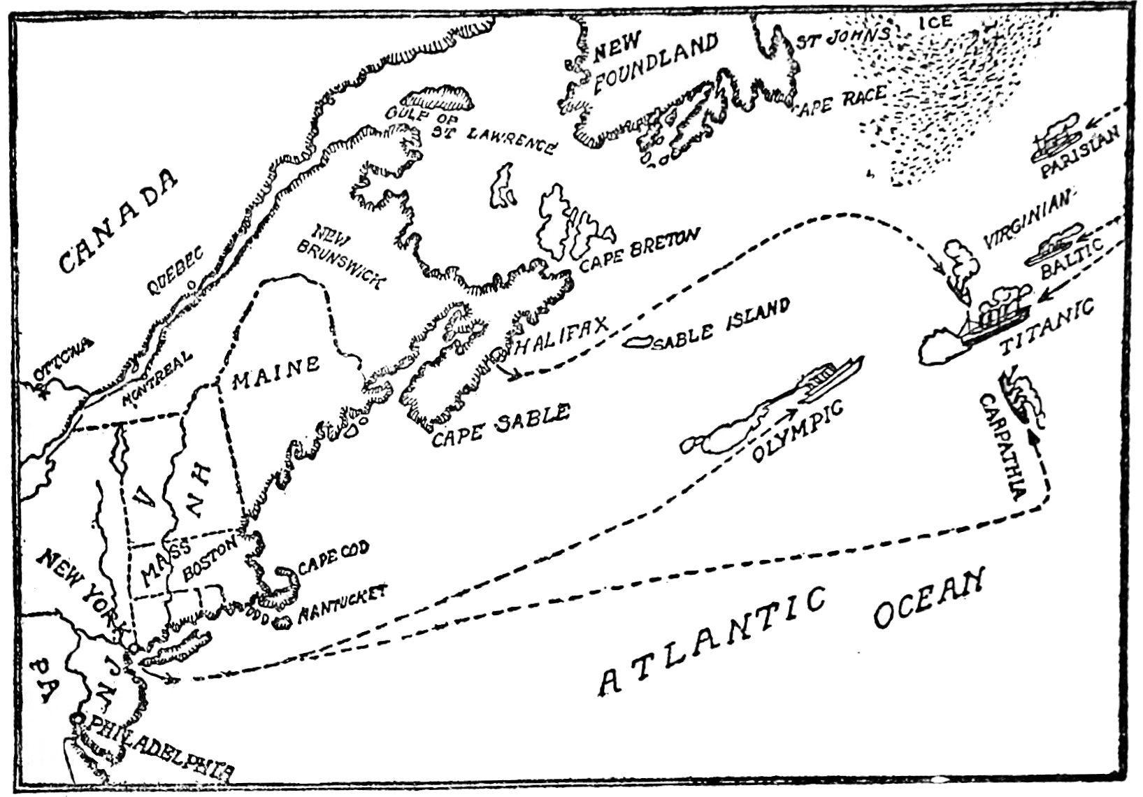 As to the behavior of officers and crew, not a word of complaint was heard from the men. They were praised as worthy Britons and true seamen. In the same breath the survivors exalted the heroism of the missing men of the first cabin, who had stood calmly waiting for their turn—the turn which, because of scarcity of boats and shortness of time, never came for most of them.