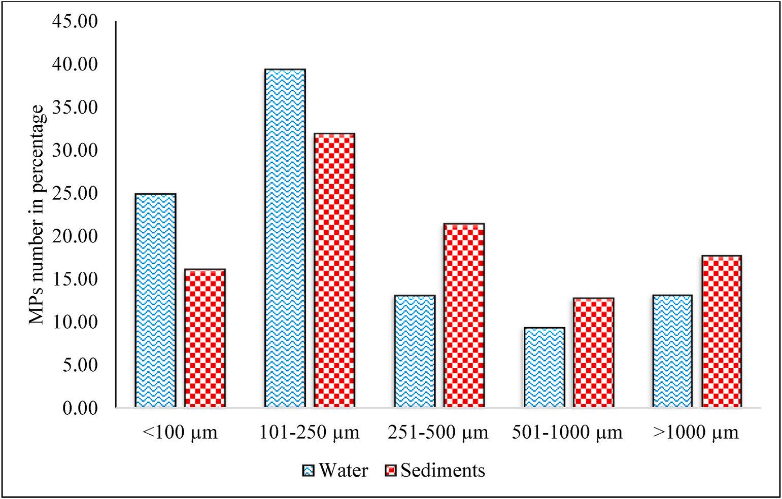 Fig. 2. Size wise MPs observed in the water and sediment samples.