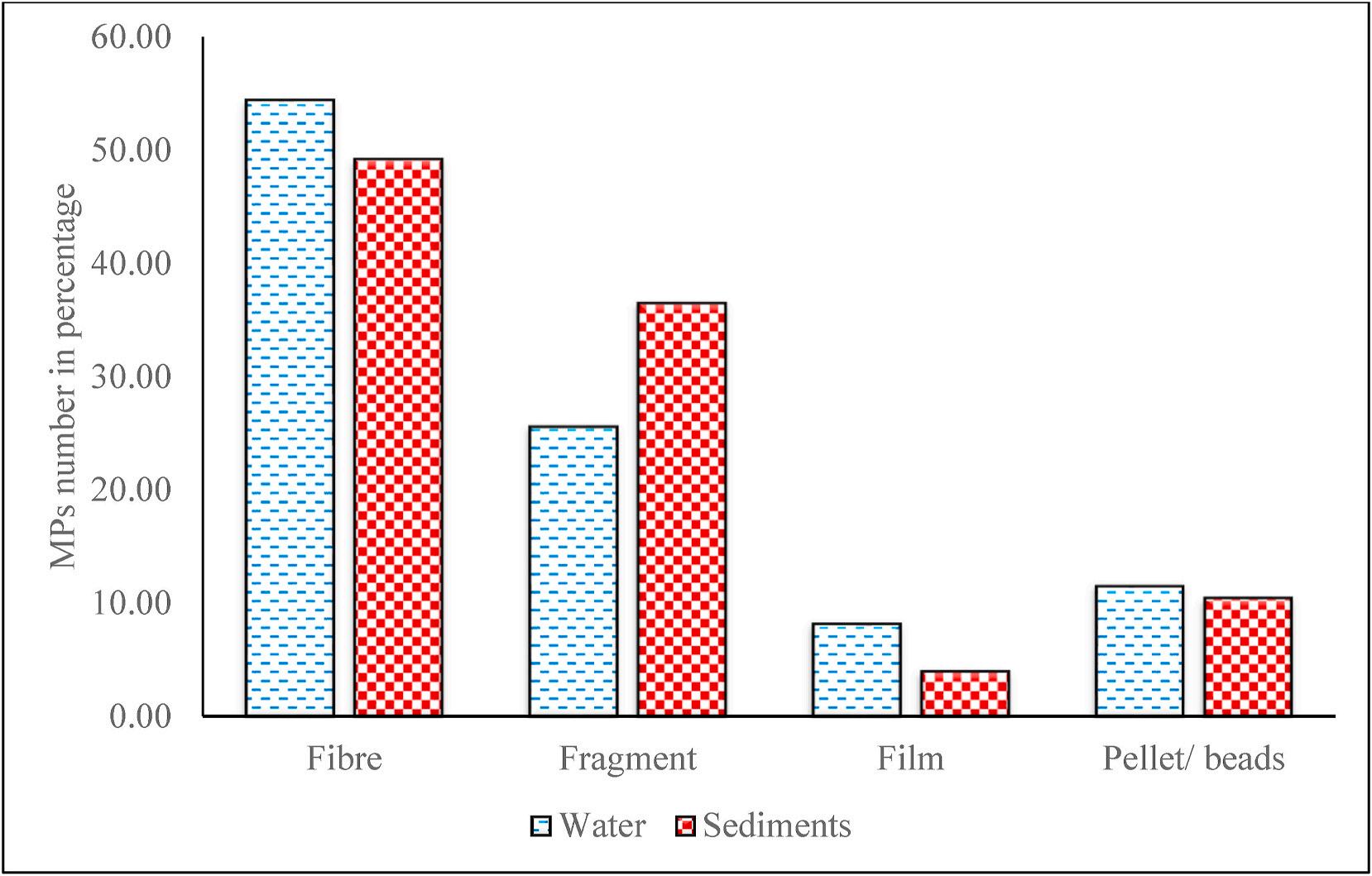 Fig. 4. Morpho type composition of MPs recorded in the sediment and water samples.
