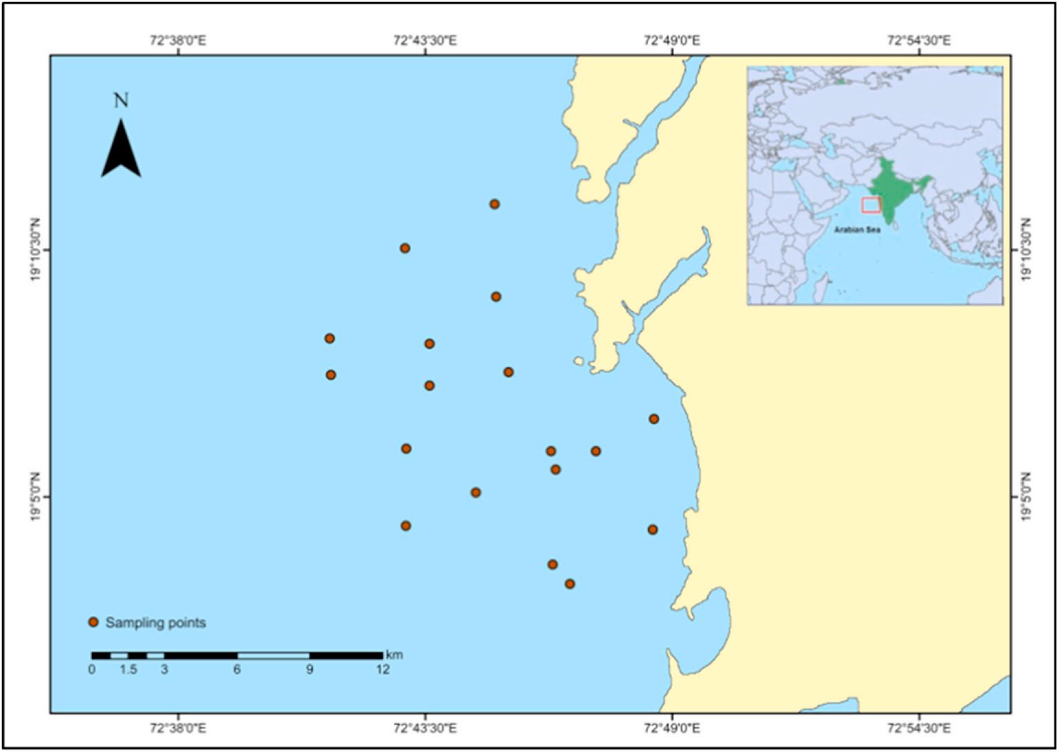 Fig. 1. Map showing the sampling locations in north eastern Arabian Sea.