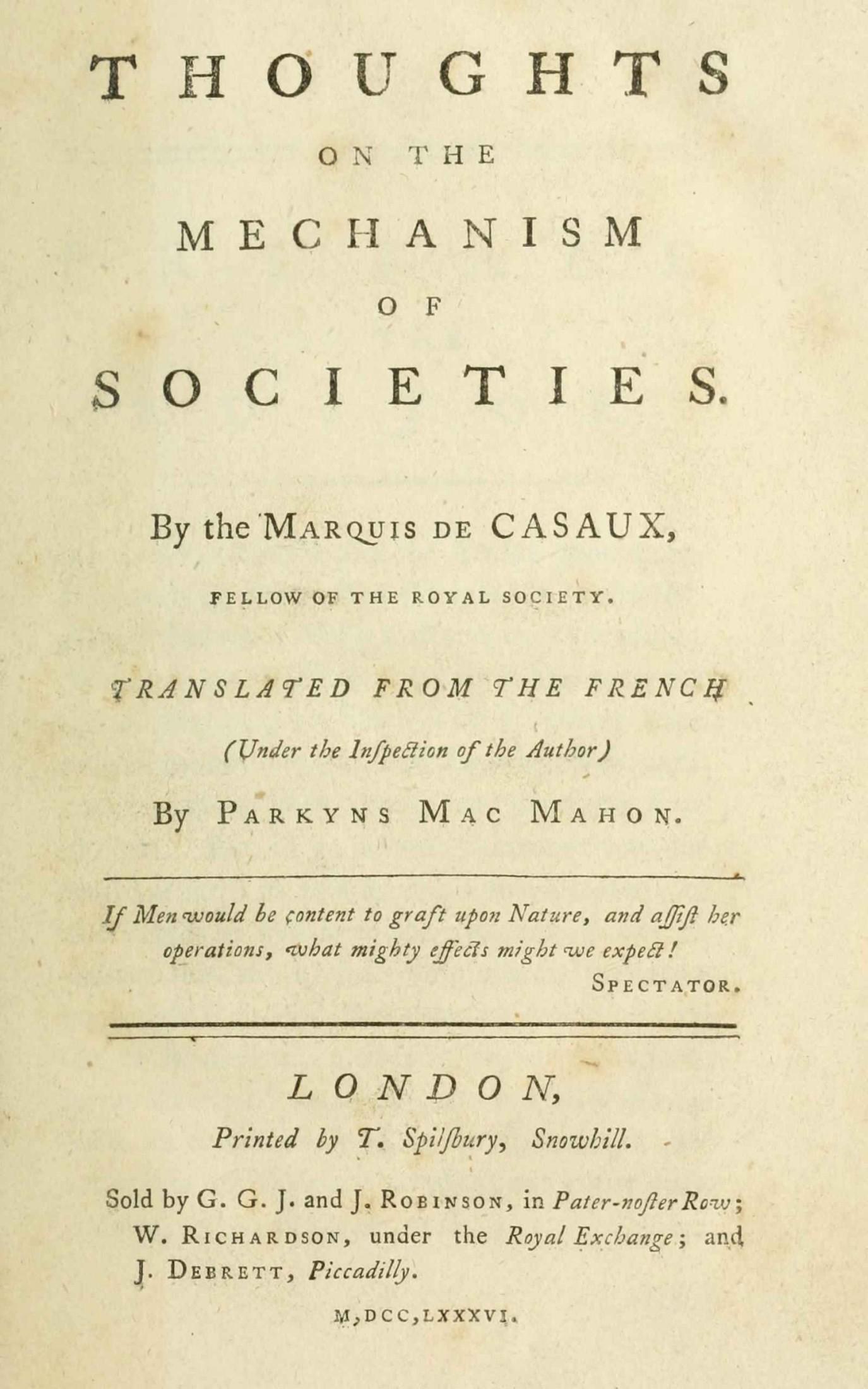 THOUGHTS ON THE MECHANISM OF SOCIETIES.