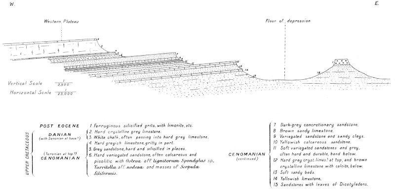 From the Cenomanian onwards throughout the Cretaceous, the Baharia area was one of continued subsidence, the lithological and palæontological characters of the beds showing evidence of a gradual increase in conditions of depth, until the maximum was reached in the deposition of the White Chalk in Danian times.