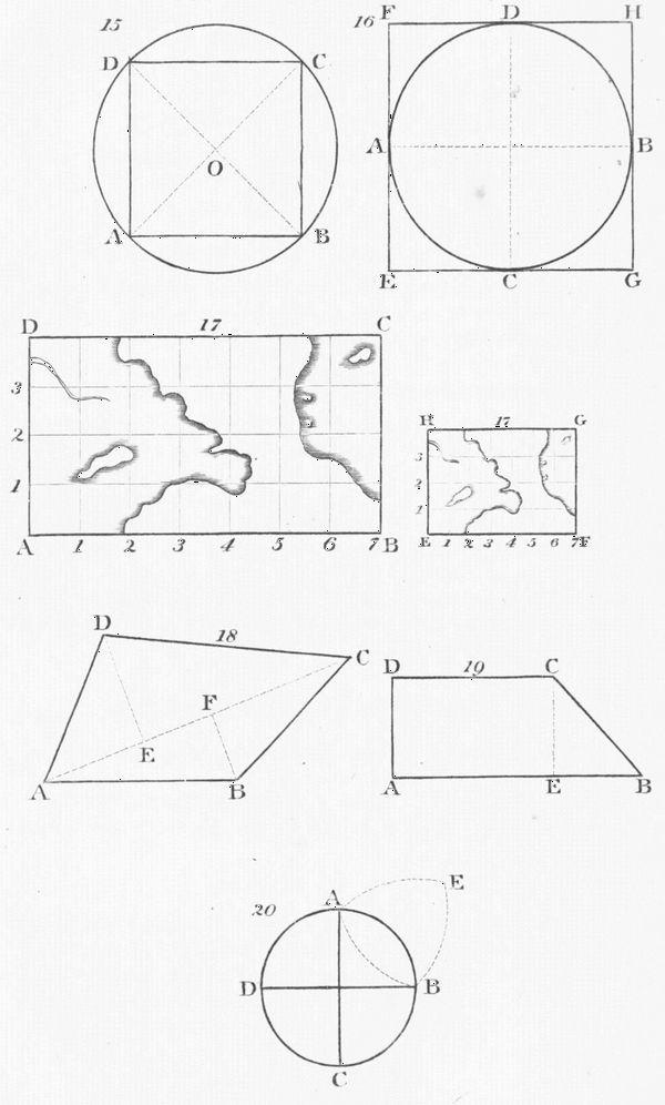 13. The sum of the diameters of two concentric circles multiplied by their difference, and by ·7854, equals the area of the ring, or space contained between them.