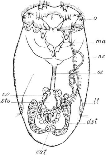 64. Callidina symbiotica.Nach Zelinka, etwas geändert. Ventralansicht.