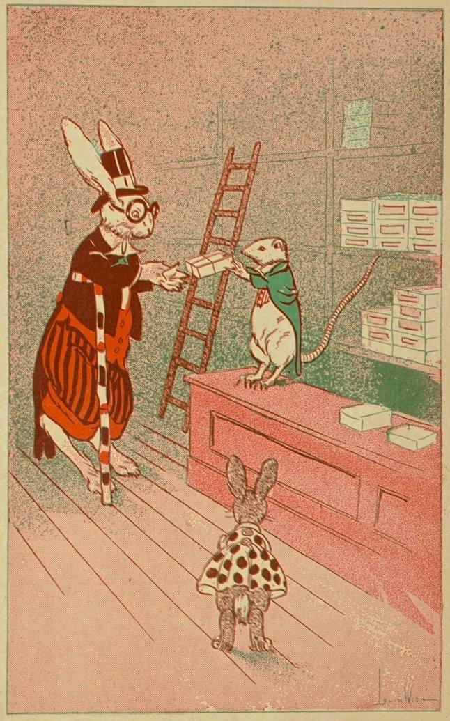 “Give Baby Bunty a nice rope,” said Uncle Wiggily to the little mousie girl clerk behind the counter, and the little rabbit girl soon had the finest one you can imagine, with puff balls on the ends so her paws wouldn’t slip off.