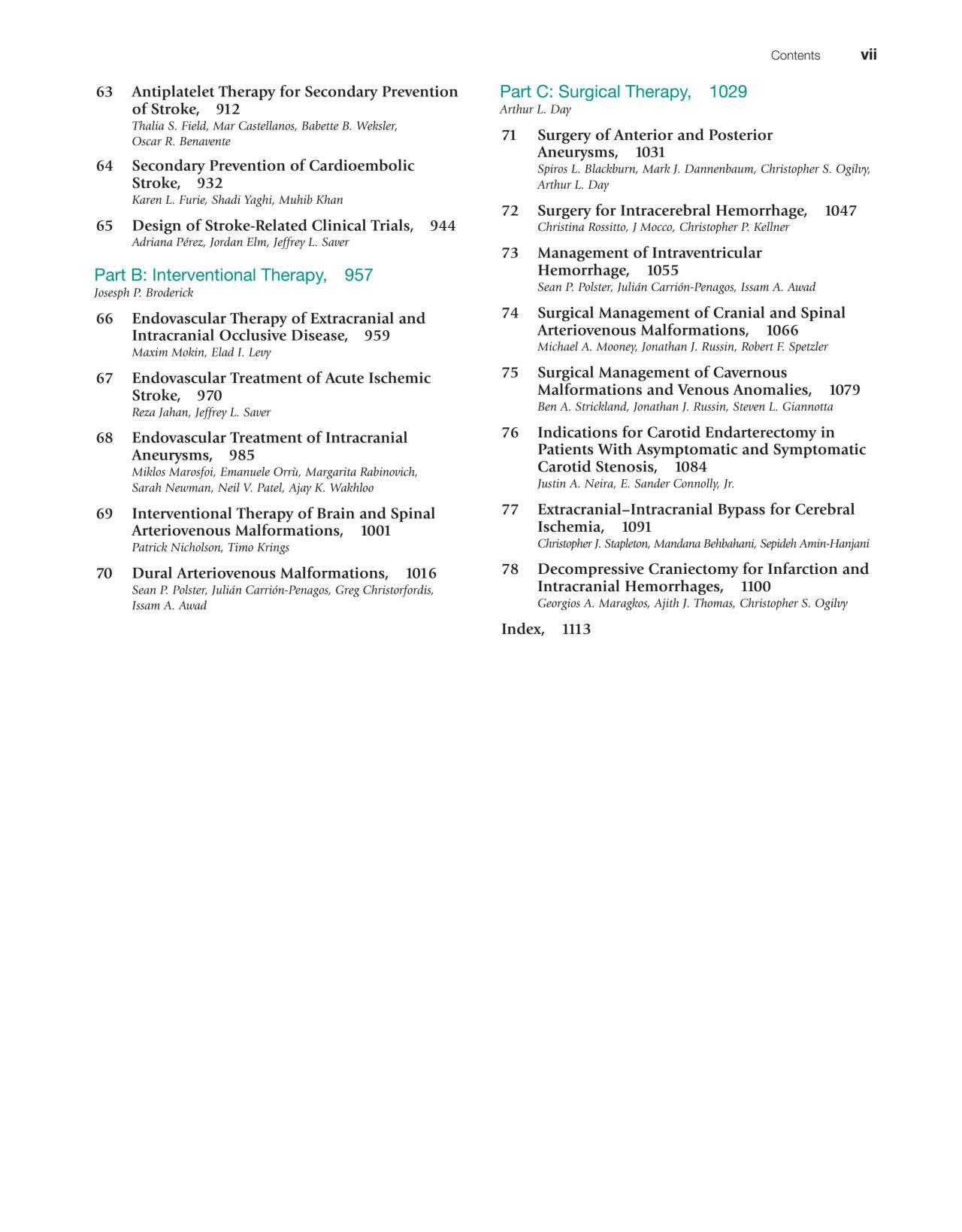 Another important change includes our new Surgical Therapy section editor, Arthur Day, MD. Dr. Day is an international authority on the surgical management of cerebral aneurysms, intracranial hemorrhage, and extracranial vascular disease. He is the recipient of numerous neurosurgical leadership awards, and from first-hand experience I can attest to his passion for teaching and the wisdom that has grown out of decades of skillfully managing the complexities of the entire array of neurovascular surgical cases. Of particular value for his role as editor, Dr. Day has been an important leader of the neurosurgical field as it has emerged from open to endovascular approaches and as it has partnered with vascular neurology in the conduct of clinical trials. As a result of his intimate knowledge of the entire neurovascular landscape and its leaders, you will see that the authors of almost all of the chapters in the Surgical Therapy section have changed and the chapters have all been updated. I think that the readers will be impressed by the combined experience, fresh perspective, and new information in every chapter in the section.