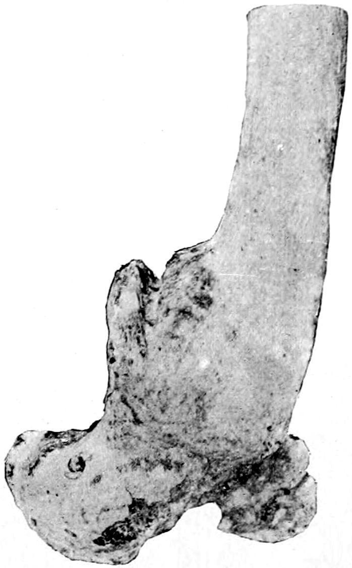 Fig. 311 illustrates extracapsular fracture and comminution. Figs. 312 and 313, also from specimens in the author’s collection, show some of the changes described above, including impaction, displacement, and some osteophytic outgrowth.