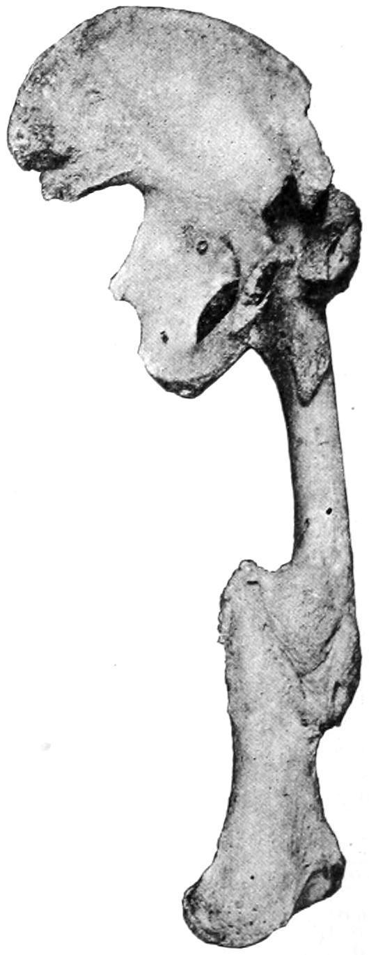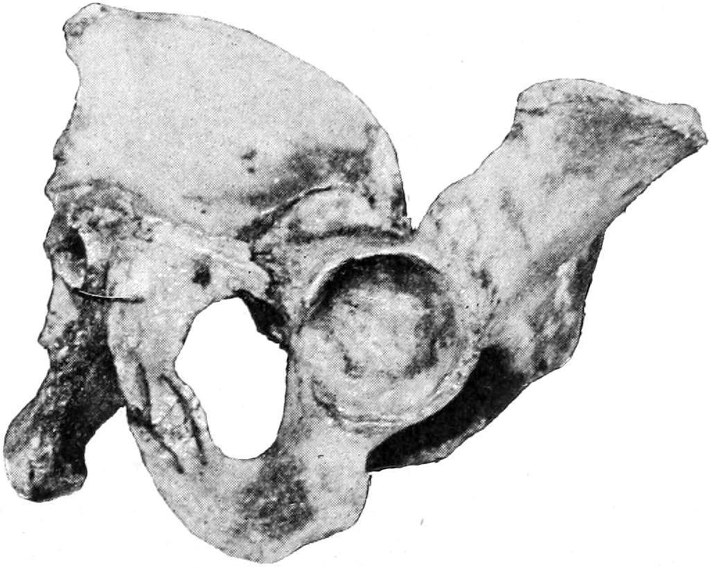 Fig. 309 illustrates a serious complication that ensued in one case after multiple fractures of the pelvis and hip, with synostosis at the hip, as well as extensive deformity following fracture of the shaft of the femur.